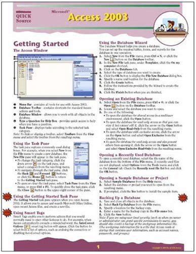 Download Microsoft Access 2003 Quick Source Reference Guide Installation And Service Manual Free available in formats PDF, Kindle, ePub, iTunes and Mobi also.
